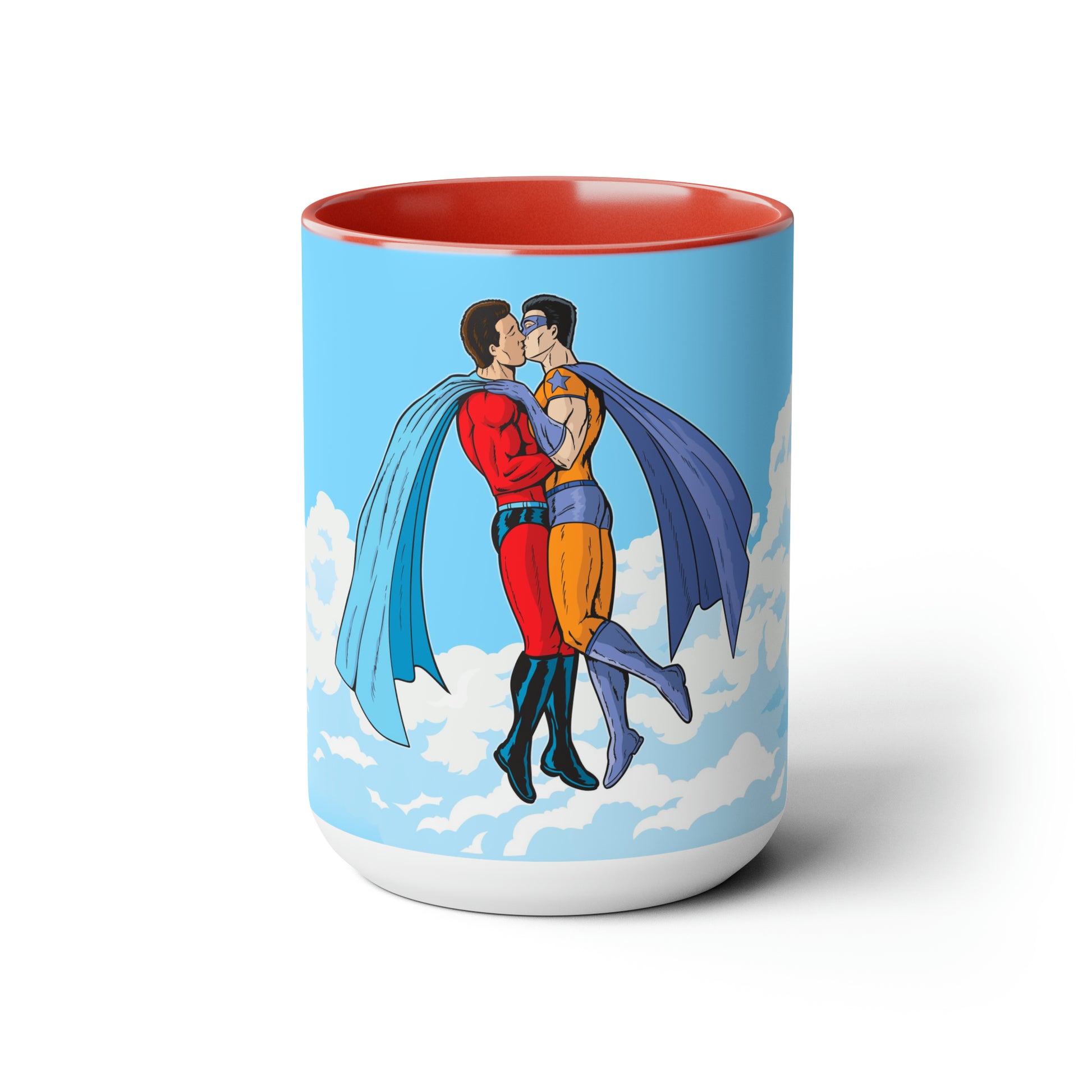 A Kiss in the Sky to brighten your day with this two-tone coffee mug. Choose between 5 different color options. Each mug comes with a colored handle, a colored interior, and a classy, glossy finish so that your mugs become an instant favorite. Licensed design.